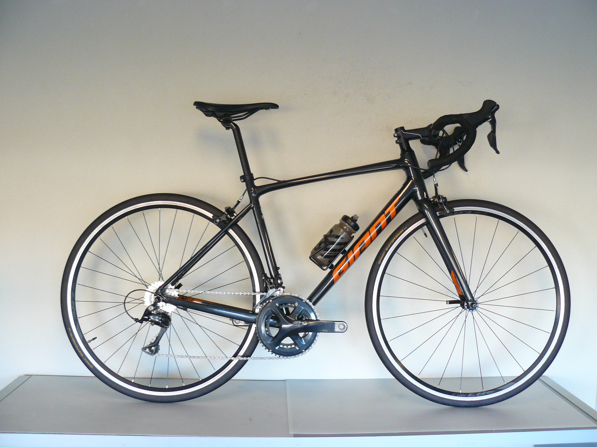 Deze Giant Contend 1 racefiets is in maat M en afgewerkt met Shimano Sora en velgremmen.